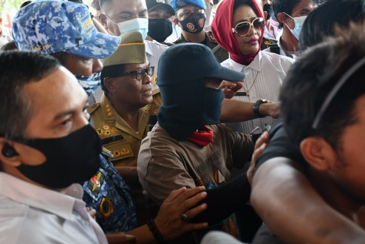 Tapi, situasi mulai memanas ketika warga mulai masuk di bawah tenda. Teriakan histeris warga yang didominasi ibu-ibu mengubah suasana riuh gaduh.
