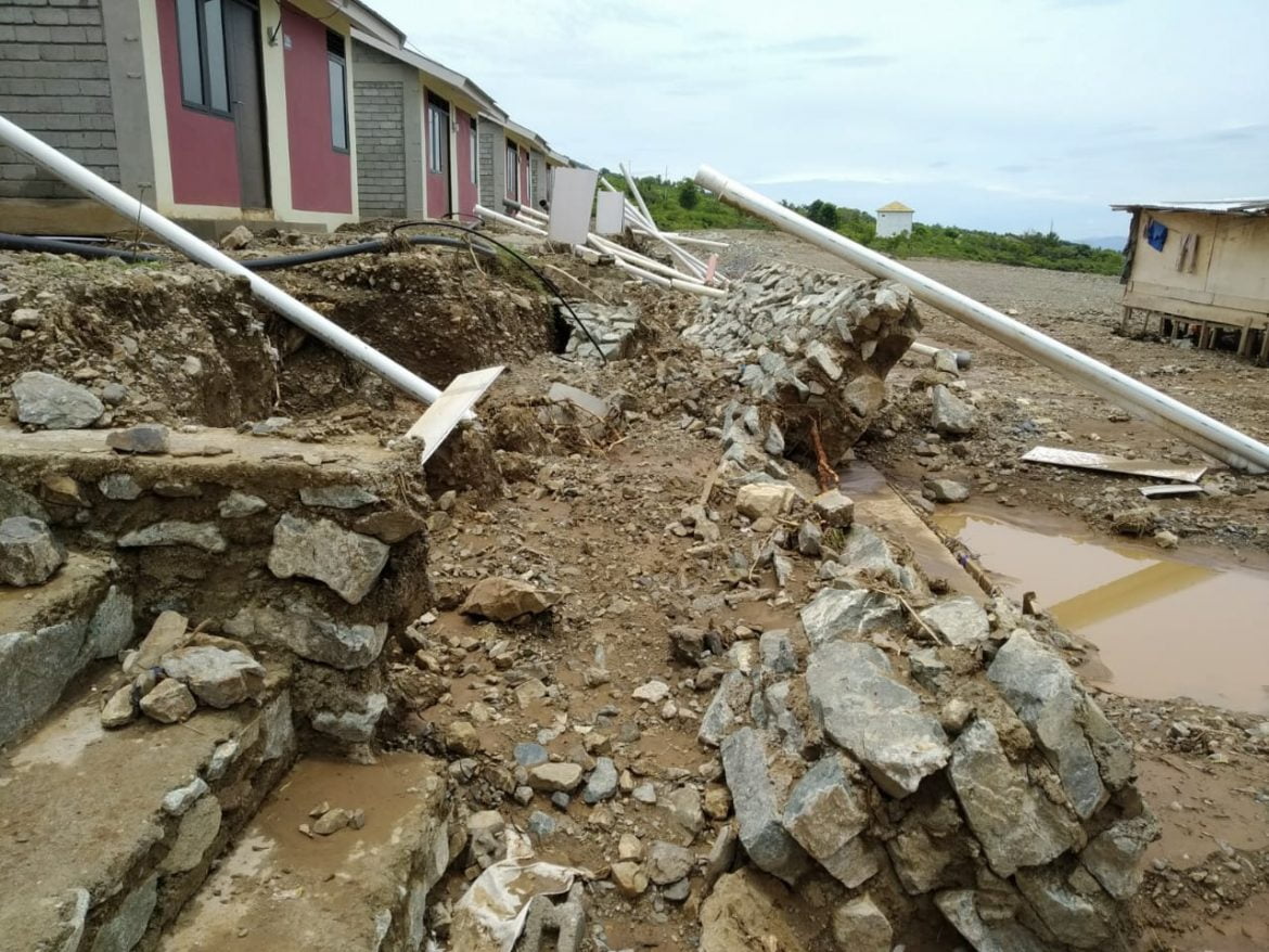 Huntap Duyu, Kamis, 24 September 2020, diterjang banjir. Akibatnya, sebagian konstruksi huntap mengalami kerusakan.