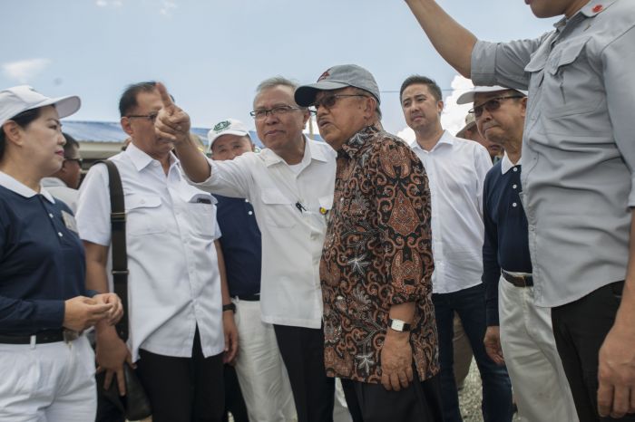 WAKIL Presiden RI Jusuf Kalla (JK) meninjau pembangunan hunian tetap (huntap) untuk korban bencana gempa, tsunami, dan likuifaksi yang dibangun Yayasan Buddha Tzu Chi di Kelurahan Tondo, Kecamatan Mantikulore, Palu, Sulawesi Tengah, Senin (7/10).