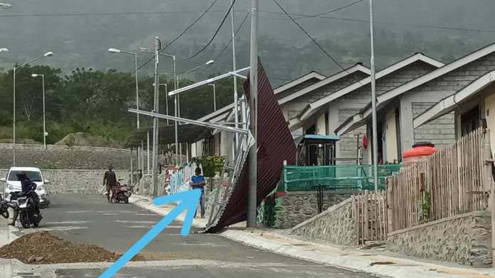 โBuktinya terdampak ada salah satu rumah meteran listriknya terbang terbawa angin dan ada juga rumah kanopinya rusak,โ ungkapnya.