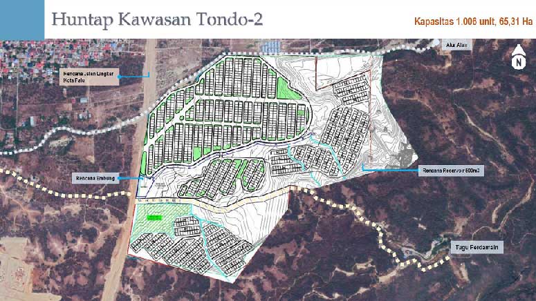 Sesuai kewenangan Kementrian ATR BPN, Menteri ATR BPN telah mengeluarkan surat Nomor AT.02/656/V/2021 tanggal 17 Mei 2021 perihal pembangunan Huntap relokasi bencana yakni, memerintahkan Kakanwil BPN Sulawesi Tengah untuk melakukan penyerahan lahan Huntap seluas 193,1 Ha yang didalamnya antara lain 65 Ha oleh PT. SPM dan PT. SW yang terletak di Kelurahan Tondo kepada pemerintah Kota Palu.
