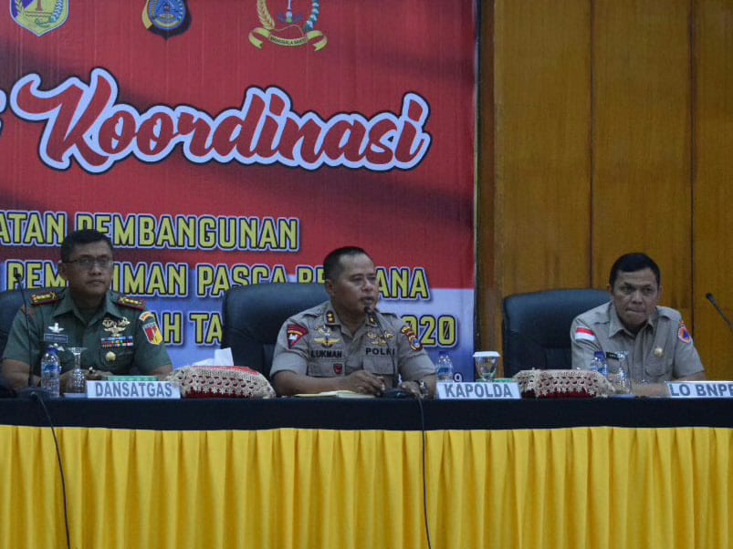 Sesuai intruksi Presiden Joko Widodo, para penyintas bencana alam secepatnya harus mendiami hunian tetap (huntap). Hal itu kembali ditegaskan oleh Ketua Satgas Bencana Sulawesi Tengah, sekaligus Danrem 132 Tadulako, Kolonel Infantri, Agus Sasmita saat rapat koordinasi percepatan pembangunan perumahan dan pemukiman pascabencana Sulteng, Rabu (11/12/2019), di Aula Torabelo Polda Sulteng.